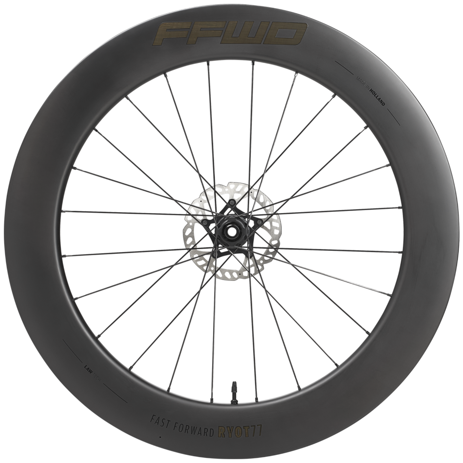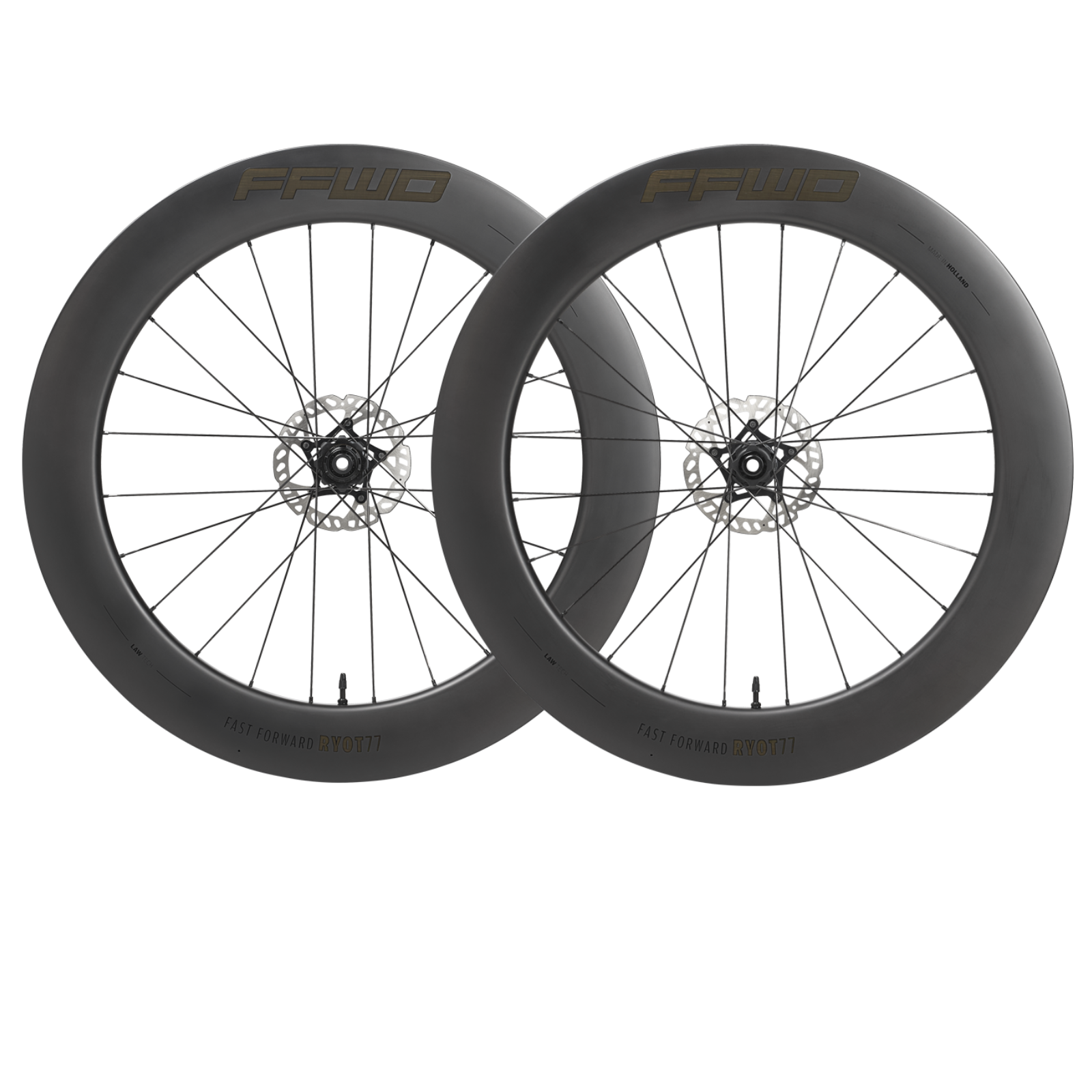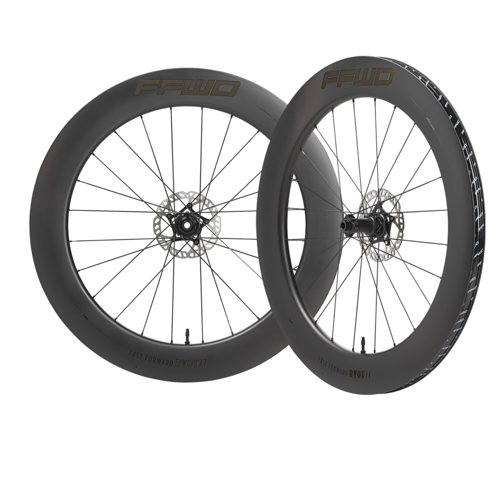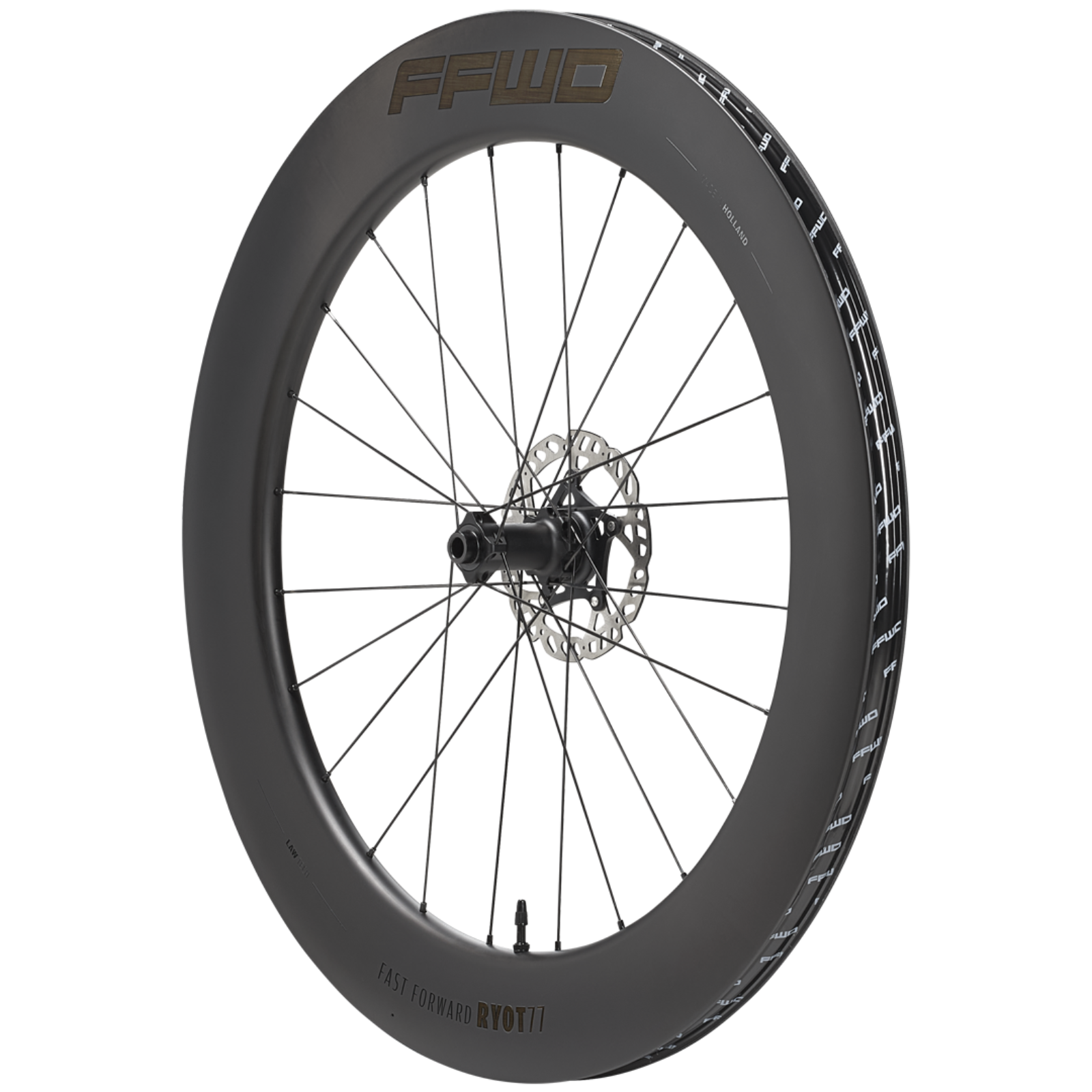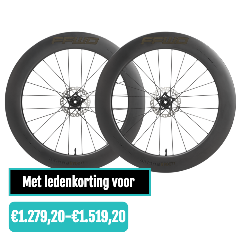 Deze RYOT77 Full Carbon Clincher Disc Wielset is dé aerodynamische wielset van het Nederlandse FFWD, speciaal ontworpen voor triatlon en lange, vlakke ritten.